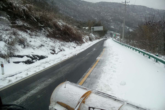2018年1月24號大雪再次降臨時,我們將改造好的兩臺鏟雪車投入山區(qū)道路使用,取得了很好的效果,24號夜里,又加班突擊改造2臺鏟雪車并于25號投入到國道省道鏟雪中,在應(yīng)用中發(fā)現(xiàn)改造后的鏟雪車鏟雪速度快,清除效果好。