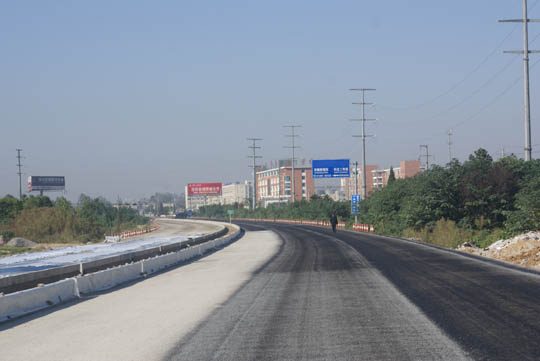 為迎接2012年11月10日在金太陽國際會展中心開幕的第三屆中國國際羽絨節(jié),六安市交通公路實(shí)業(yè)有限公司臨危受命承建G312六安段(金橋西至皖西大道)改建工程延伸段。該工程起于K565+330皖西大道大交叉口處,終點(diǎn)位于K567+200迎賓大道交叉口處,全長1870米,老路為雙向四車道一級公路,路基寬24米,采用下挖反填法,碎石化路面。公司上下克服資金緊、工期短、施工難度大等困難,放棄假日休息,全力以赴,日夜奮戰(zhàn),確保按時(shí)、按質(zhì)、按量完成該工程。目前1.1公里換板修補(bǔ)和面層碎石化已結(jié)束,700米挖方段的級配碎石回填已完成,正在進(jìn)行水穩(wěn)攤鋪,預(yù)計(jì)10月25日完成主體工程。為六安的招商引資創(chuàng)造良好交通環(huán)境,為展示“五色、精彩”六安形象添彩。