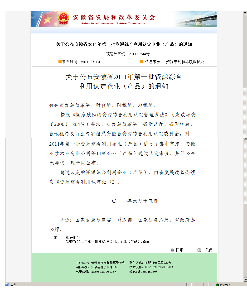 六安市交通公路實業(yè)有限公司在路面大中修中利用瀝青路面冷再生技術(shù)綜合利用廢棄的建筑垃圾,實現(xiàn)了老舊路面固體廢棄物回收再利用。被認(rèn)定為2011年安徽省第一批資源綜合利用企業(yè),省發(fā)改委頒發(fā)《資源綜合利用認(rèn)定證書》。